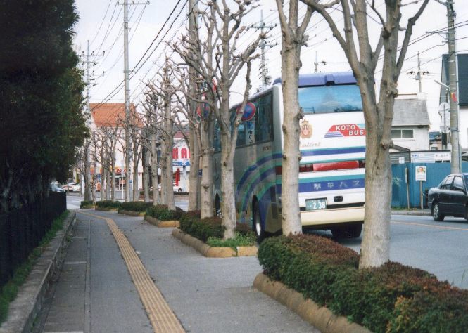 ある宗教法人の宇都宮市内に存在する施設にやってくる観光バス(2001年ごろ)