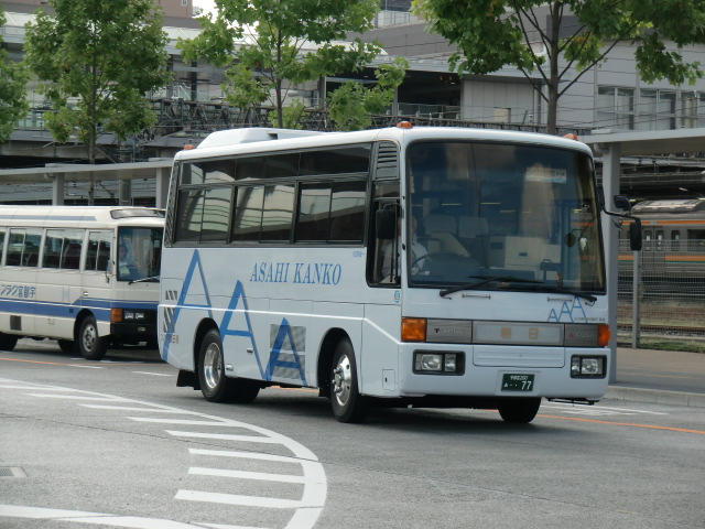 バスは、おなじみの朝日観光バスのマイクロバスと小型バスの2台