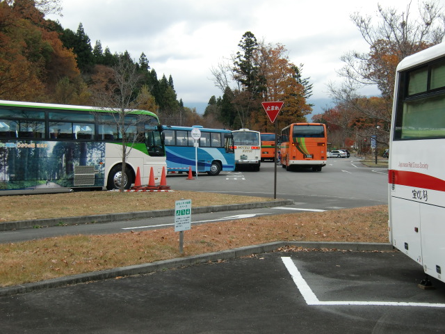 各バスに案内係が添乗しており無線で調整しているようです。