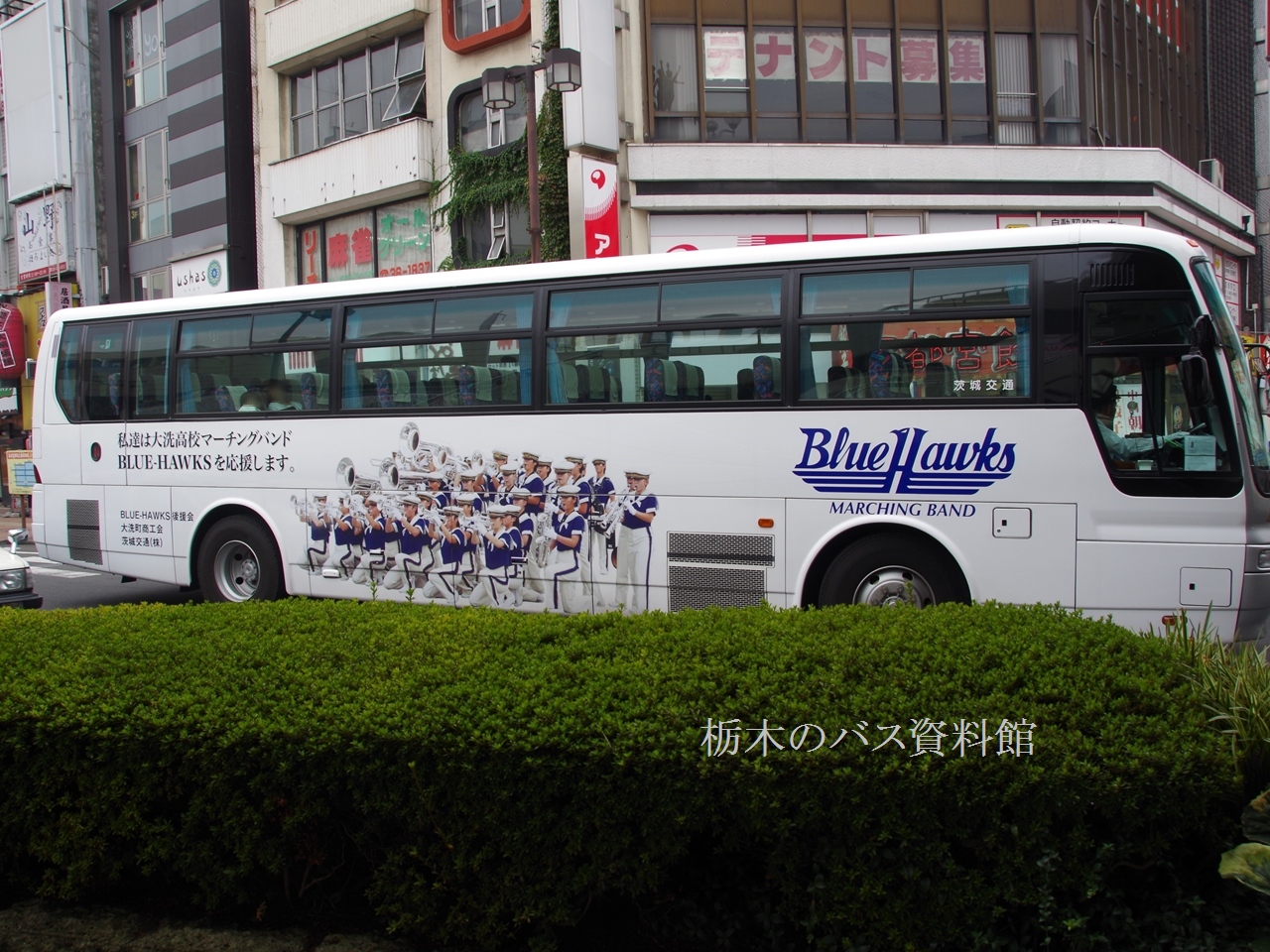 「大洗高校マーチングバンドBLUE−HAWKS応援」 茨城交通 (2014年10月 宇都宮駅前)