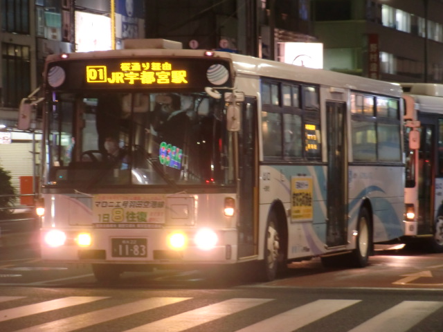 4月10日(火)昼12時半頃、インターパークから宇都宮駅到着後、宇都宮駅から簗瀬営業所?へ回送しているところを撮影。