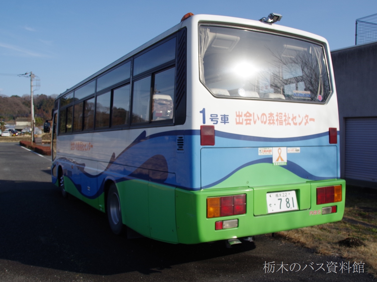 鹿沼市出会いの森福祉センター送迎車 栃木22せ781 三菱エアロミディ (前後とも2016年2月)