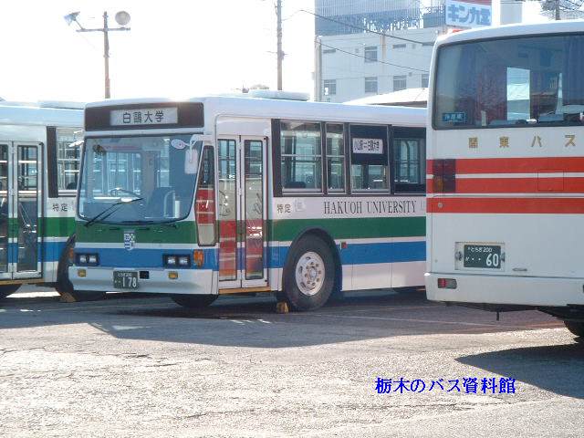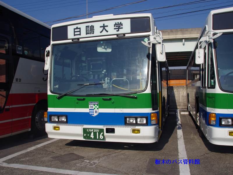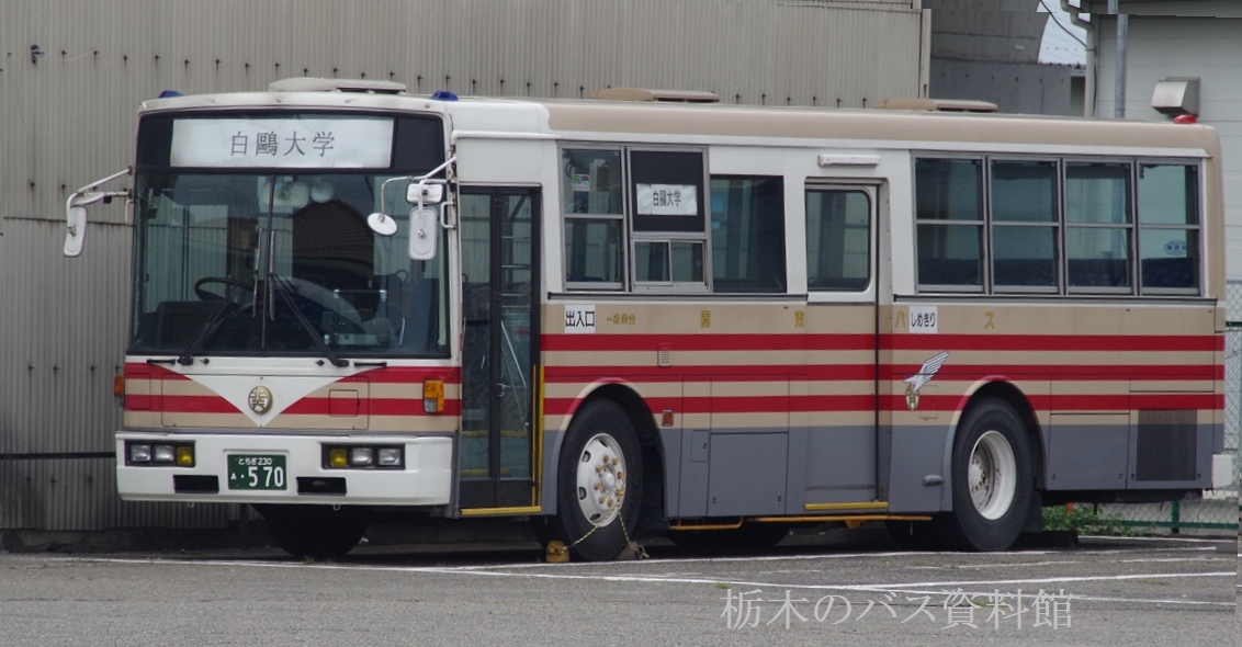 導入当初から、白鴎大学の特定車で、白鴎大学の自家用バスと同色を纏っています。