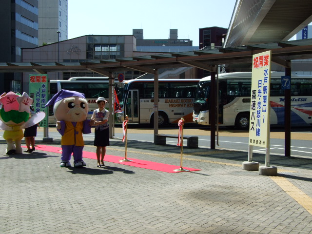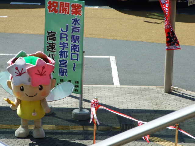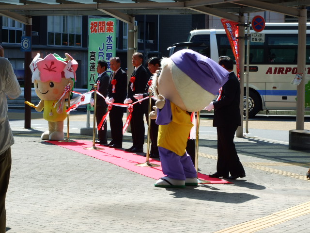 関東自動車のバスとゆるキャラ2体参加でテープカット等式典をしたようです。