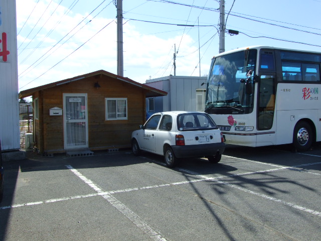 駐車場の片隅にある日光営業所の事務所